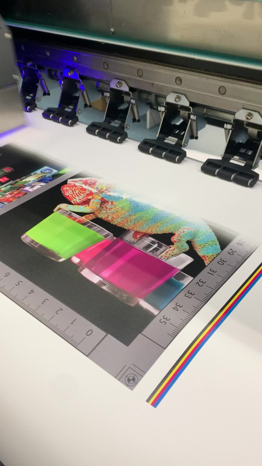 Ricoh Gen5 fejekkel ellátott UV nyomtató, tekercses nyomtatásra. Maximális nyomtatási szélesség 300 cm.